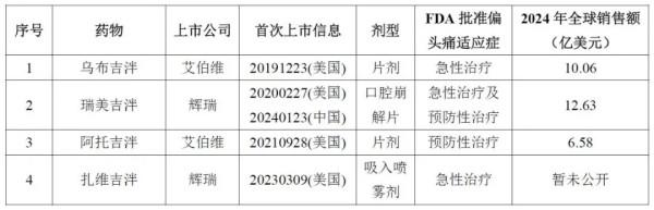 1.3 已上市的靶向CGRP通路的吉泮类药物信息