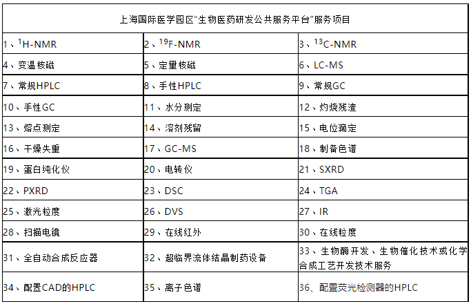 平台配备有二十多台大型科学仪器设备:化学家的“火眼金睛”——核磁波谱扫描仪、“分子量推测快捷小助手” ——液质/气质联用仪、不同型号的“纯化小能手”——制备色谱仪、“残留溶剂电子眼”——气相色谱仪、“无机阴阳离子侦探法师” ——离子色谱、各类高效液相色谱仪,除此之外,还配备有电位滴定仪、水分测定仪、马弗炉等小型专业仪器设备,可为生物研发提供公共服务的有蛋白纯化仪、电转仪等大型仪器设备;此外平台还与华东理工大学结晶工程国家重点实验室联合设立共享实验室,可为客户提供各种涉及晶型检测的服务,包括XRPD(X射线粉末衍射)、DSC(差示扫描量热)、TGA(热重分析)、SXRD(X射线单晶衍射)等。